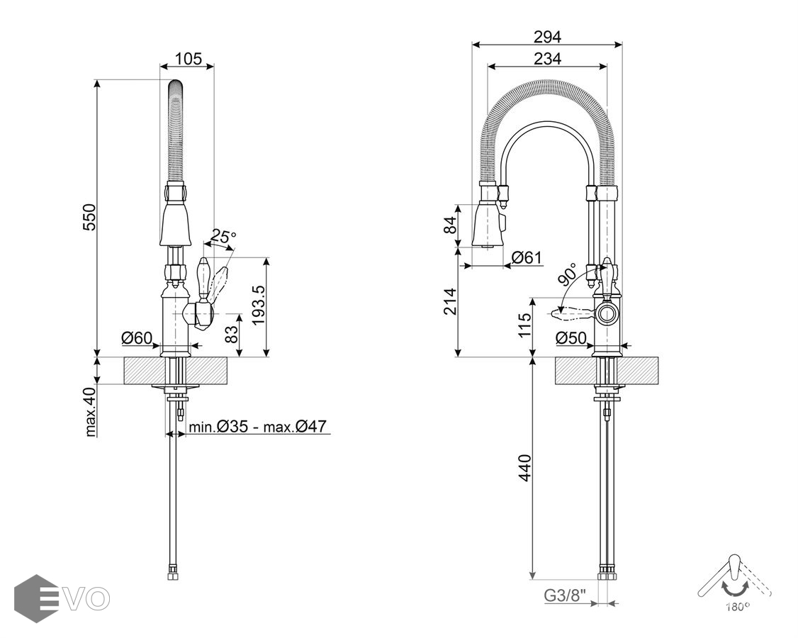 Поворотный излив позволяет выбрать и зафиксировать направление водяного потока. Угол поворота достигает 360 градусов, поэтому модели могут быть установлены на мойку с двумя чашами или крылом.