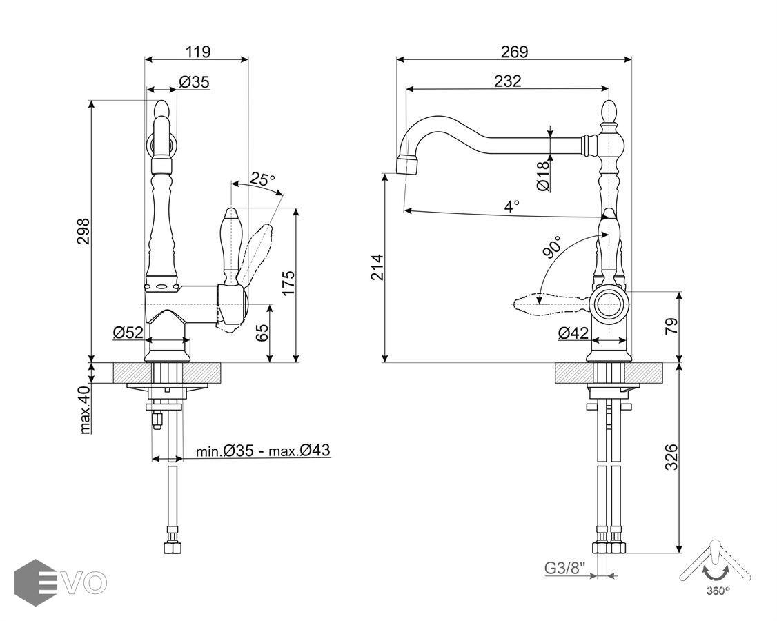 Высота излива: | 214 мм |