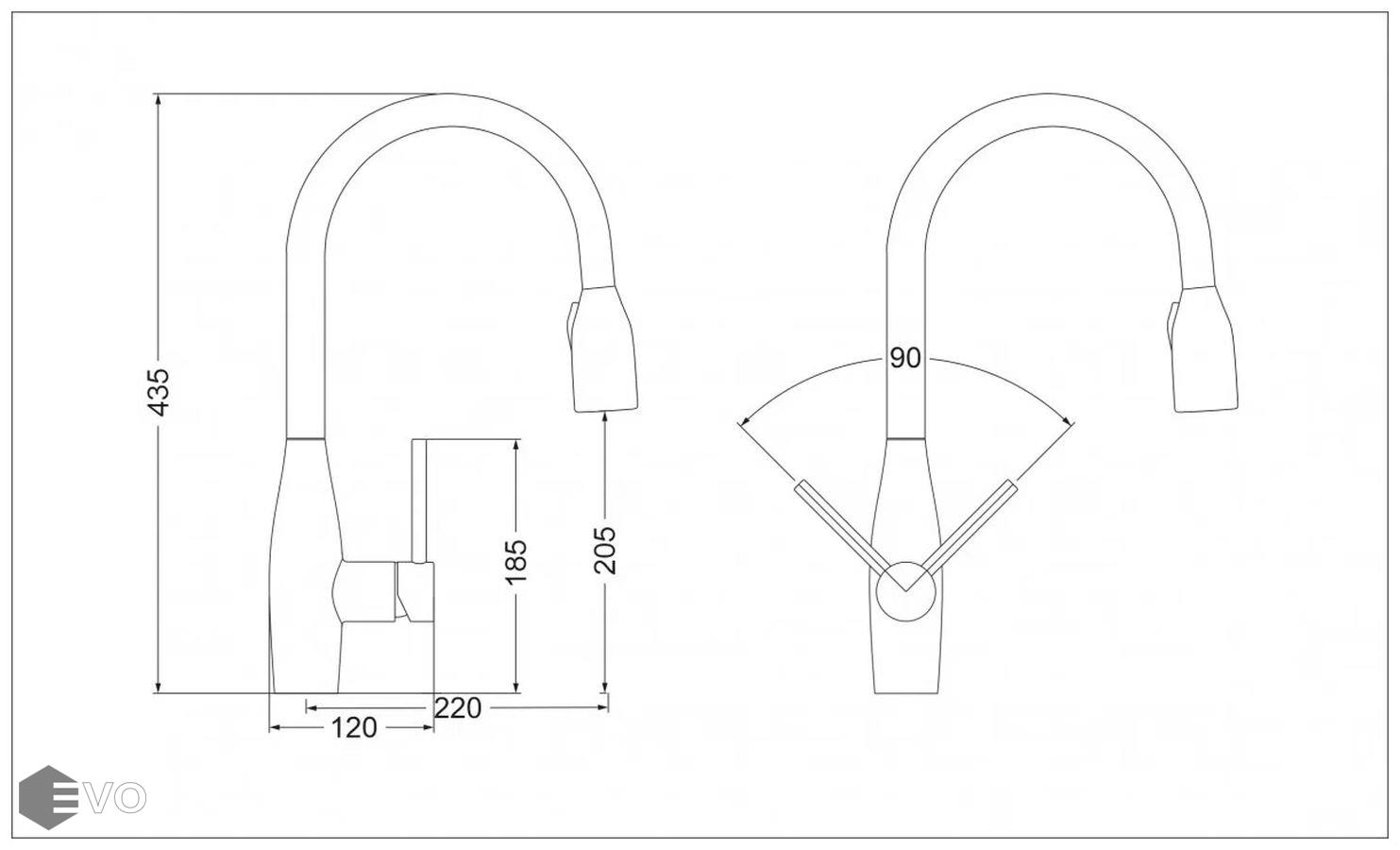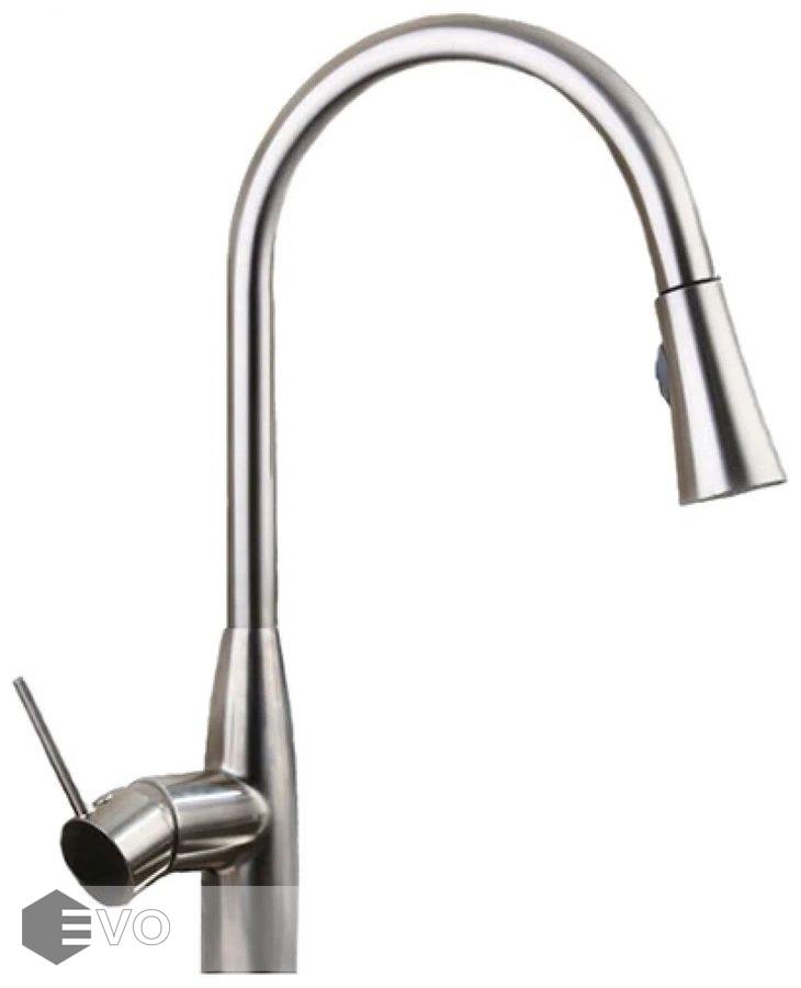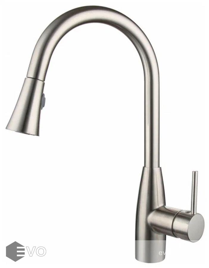 Смеситель обладает удобным изгибом на основании. Выносной душ удобен для мыться отдельных частей мойки. Дизайн смесителя сделан в современном стиле. Высота смесителя 435 мм позволит удобно мыть большие кастрюли. Подойдет практически в любые кухонные раковины.