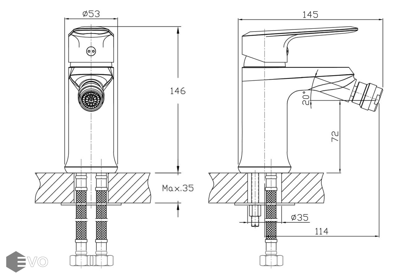 Смеситель для биде RUSH арт.DE7535-12 с металлической ручкой из коллекции Devon изготовлен из высококачественной латуни, имеет рычажное управление и традиционный излив. В смеситель установлен картридж D-35 (RSH302) с керамическими пластинами. У смесителя поворотный пластиковый аэратор с нержавеющим корпусом, угол наклона аэратора - 20 гр.