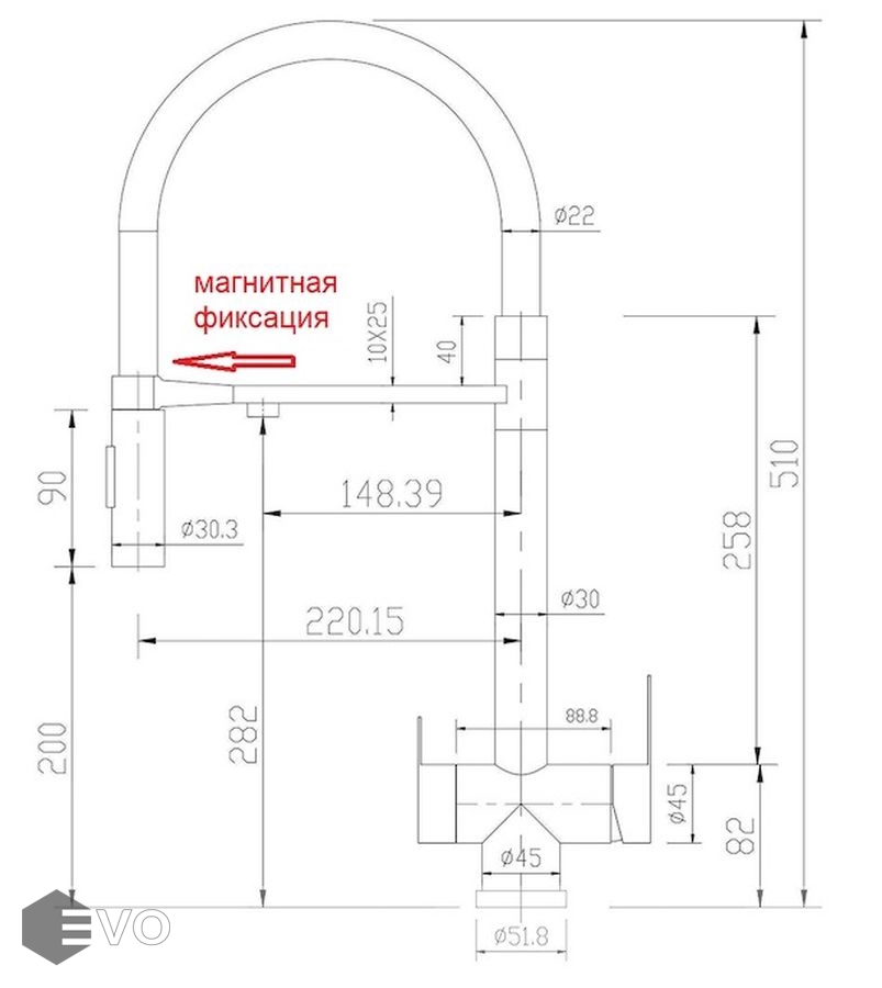 • Высота смесителя: 510 мм