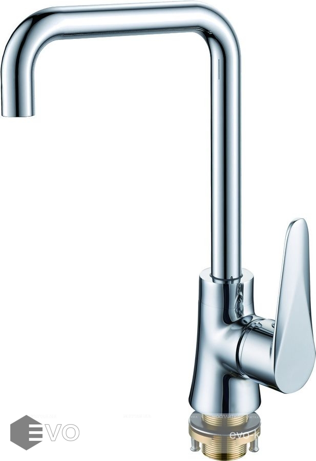 Смеситель для кухни RUSH арт. DN0335-22 с поворотным изливом из коллекции Denis с металлической ручкой, изготовлен из высококачественной латуни и имеет рычажное управление.