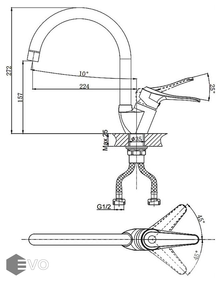 Смеситель RUSH Jawa JA0735-22 предназначен для подачи горячей и холодной воды в кухонных помещениях.