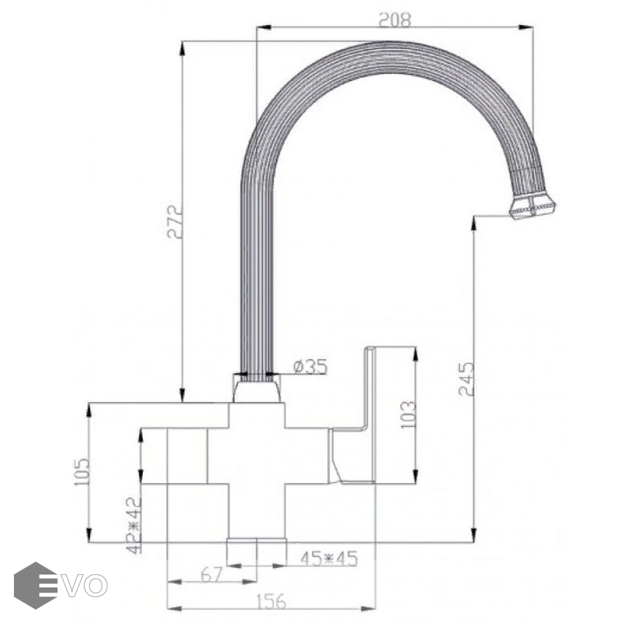 - Длина излива: 208 мм