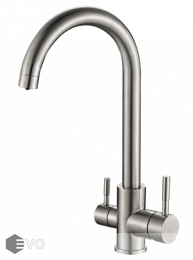 Технология комбинированного смесителя ZORG два в одном позволяет получать водопроводную и очищенную воду из одного смесителя. Благодаря "двойному каналу" в изливе смесителя, вода подается не смешиваясь по разным каналам. Рычаг управления водопроводной водой справа, питьевой - слева.