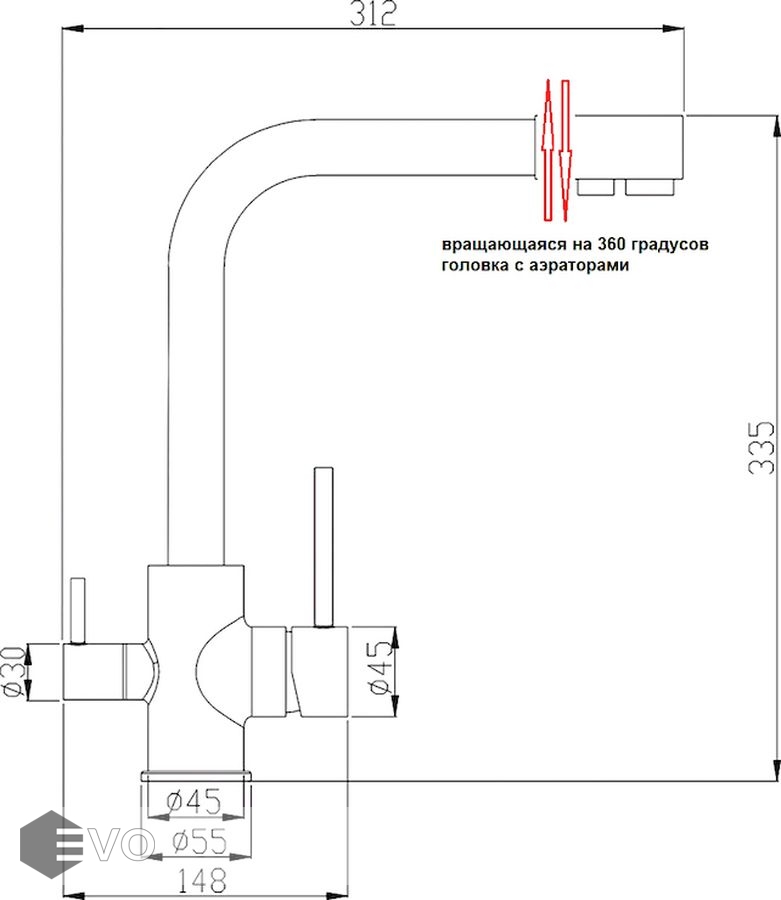 • ВЫСОТА ИЗЛИВА: 335 мм
