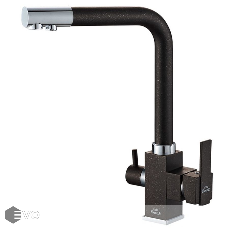 Смеситель под фильтр 2 в 1 для кухни модель SH 805 BLACK CR представляет коллекцию смесителей Zorg Steel Hammer.