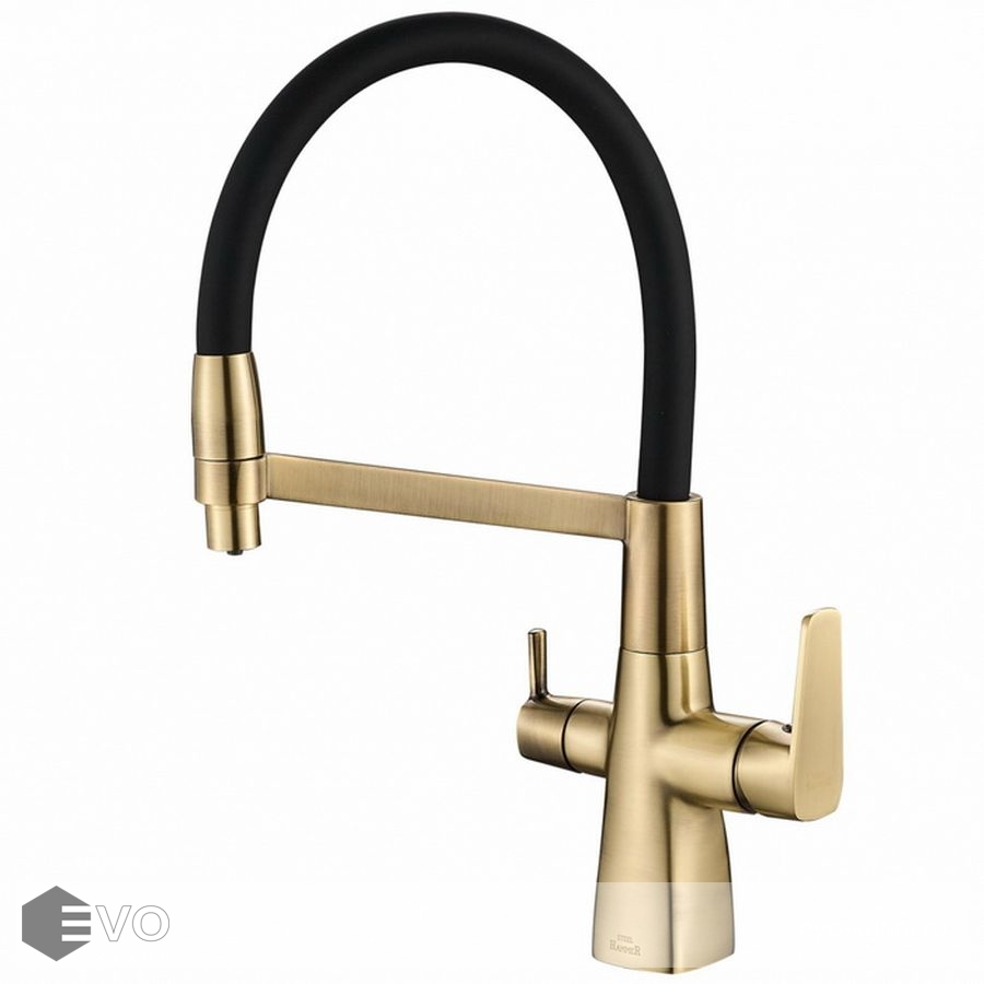 Комбинированный смеситель для кухонной мойки 2 в 1 для кухни модель SH 818- бронза/черный представляет коллекцию смесителей Steel Hammer. Эта модель производится из латуни с последующим приданием поверхности смесителя благородного цвета бронзового оттенка. При изготовлении применяется технология PVD-покрытия. Такое покрытие нанесено специальным способом и не стирается по прошествии времени. Оригинальный классический дизайн в совокупности с удобными размерами кухонного смесителя позволяет использовать его в полной мере. Прекрасно гармонирует с гранитными кухонными мойками других производителей.