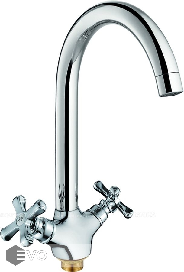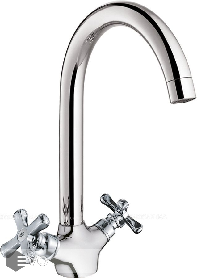 Смеситель для кухни RUSH арт. BI7650-24 с высоким поворотным изливом с металлической ручкой из коллекции Bianki изготовлен из высококачественной латуни и имеет вентильное управление. В смеситель установлены кран-буксы (RSH502) с керамическими пластинами.