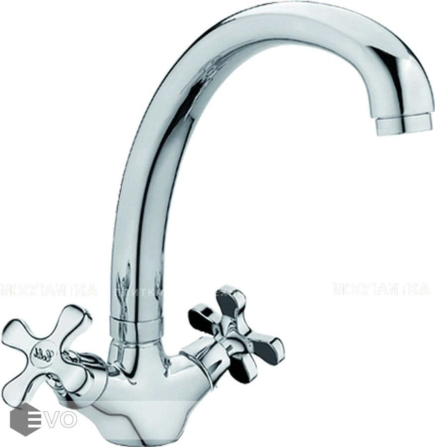 Смеситель для кухни с высоким, поворотным изливом RUSH арт. SA5350-23 с металлической ручкой из коллекции Sakhalin изготовлен из высококачественной латуни и имеет вентильное управление.
