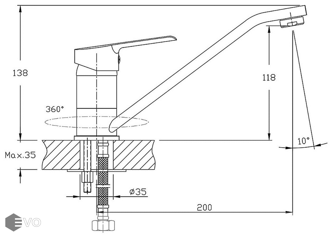 - Угол поворота аэратора: 10°