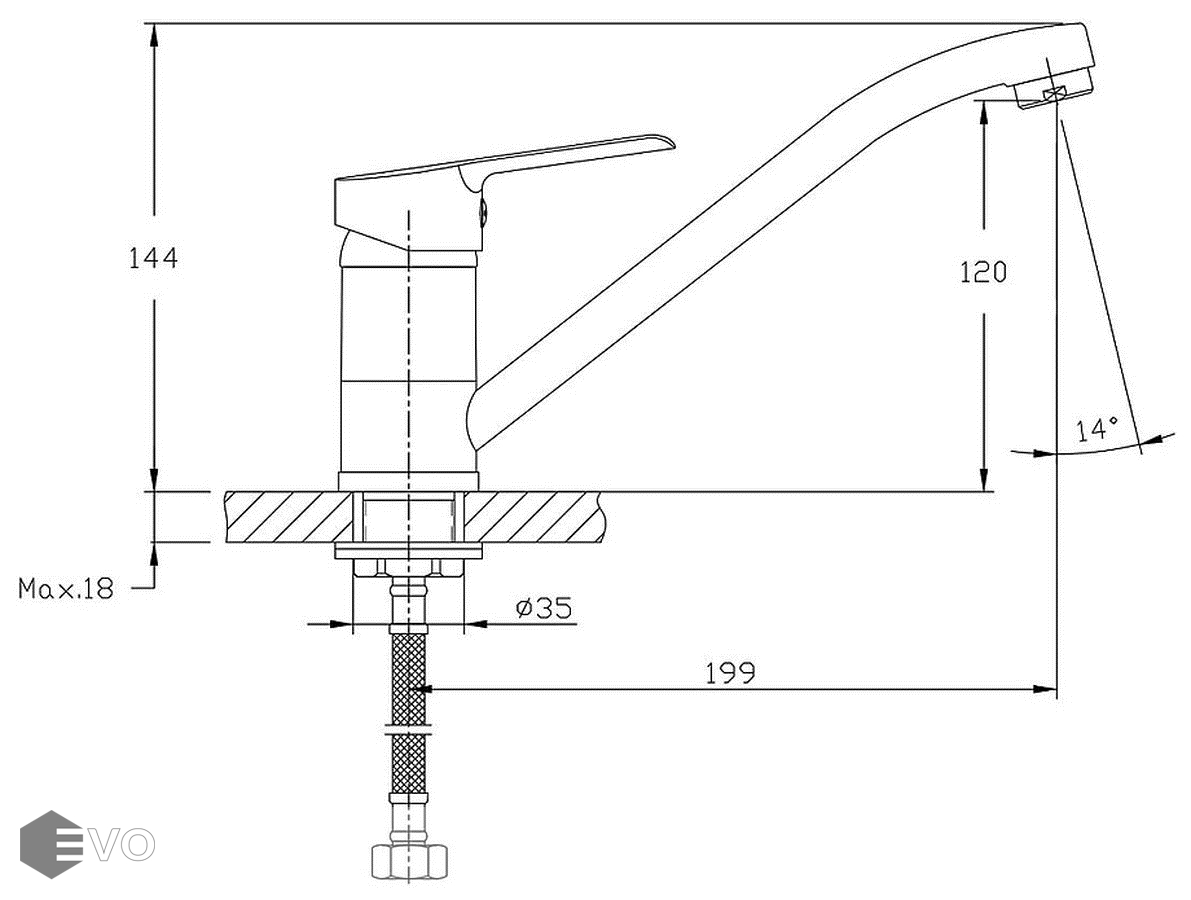 Длина излива 199 мм