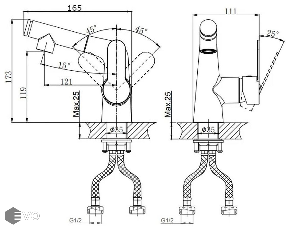 В комплект поставки входят: фум-лента, универсальная присоединительная группа, вытяжная лейка, аэратор и 2 подводки с латунными гайками.