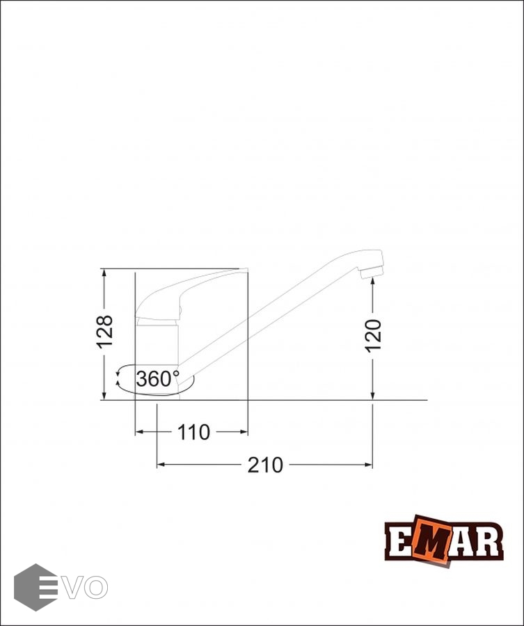 Смеситель EMAR EC-3009 под гранит, универсальный (подходит в любую кухонную мойку EMAR).