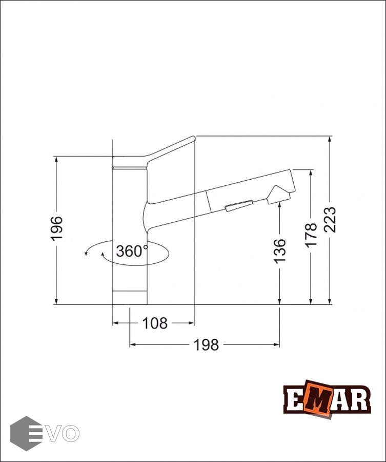 | Длина излива: | 198 мм |