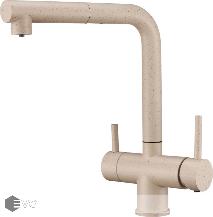 Смеситель для кухни из нержавеющей стали EMAR 7017 под гранит с возможностью подключения фильтра питьевой воды, выносным душем и керамическим дисковым картриджем.