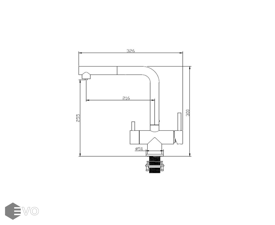 - Высота смесителя: 300 мм
