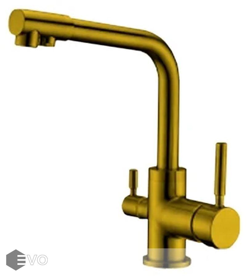 Дизайнерский смеситель для кухни. Смеситель по цвету сочетается с мойками PVD.