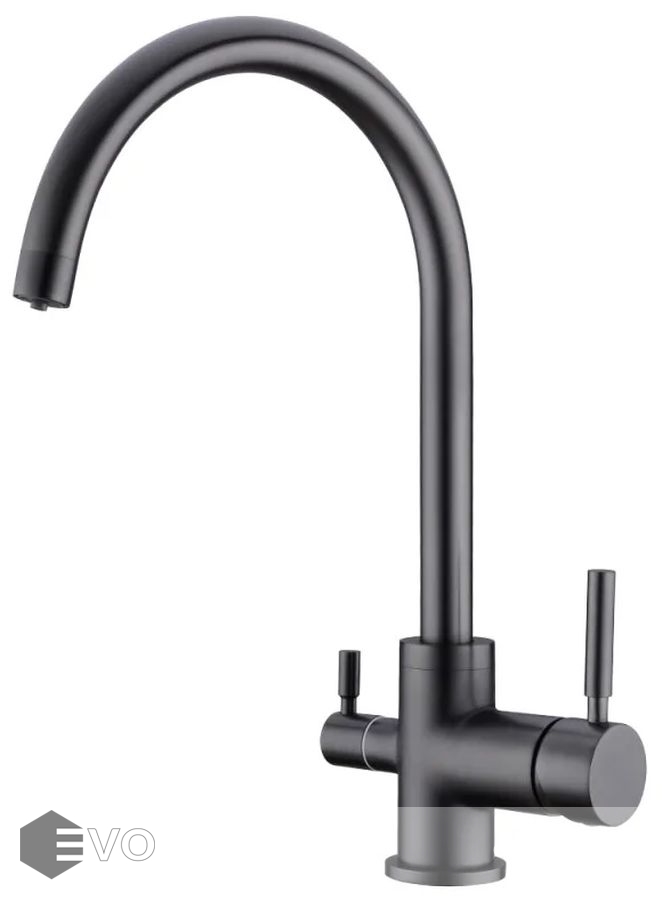 Смеситель имеет монорычажное управление (рычаг на подачу проточной воды и рычаг на подачу питьевой воды).
