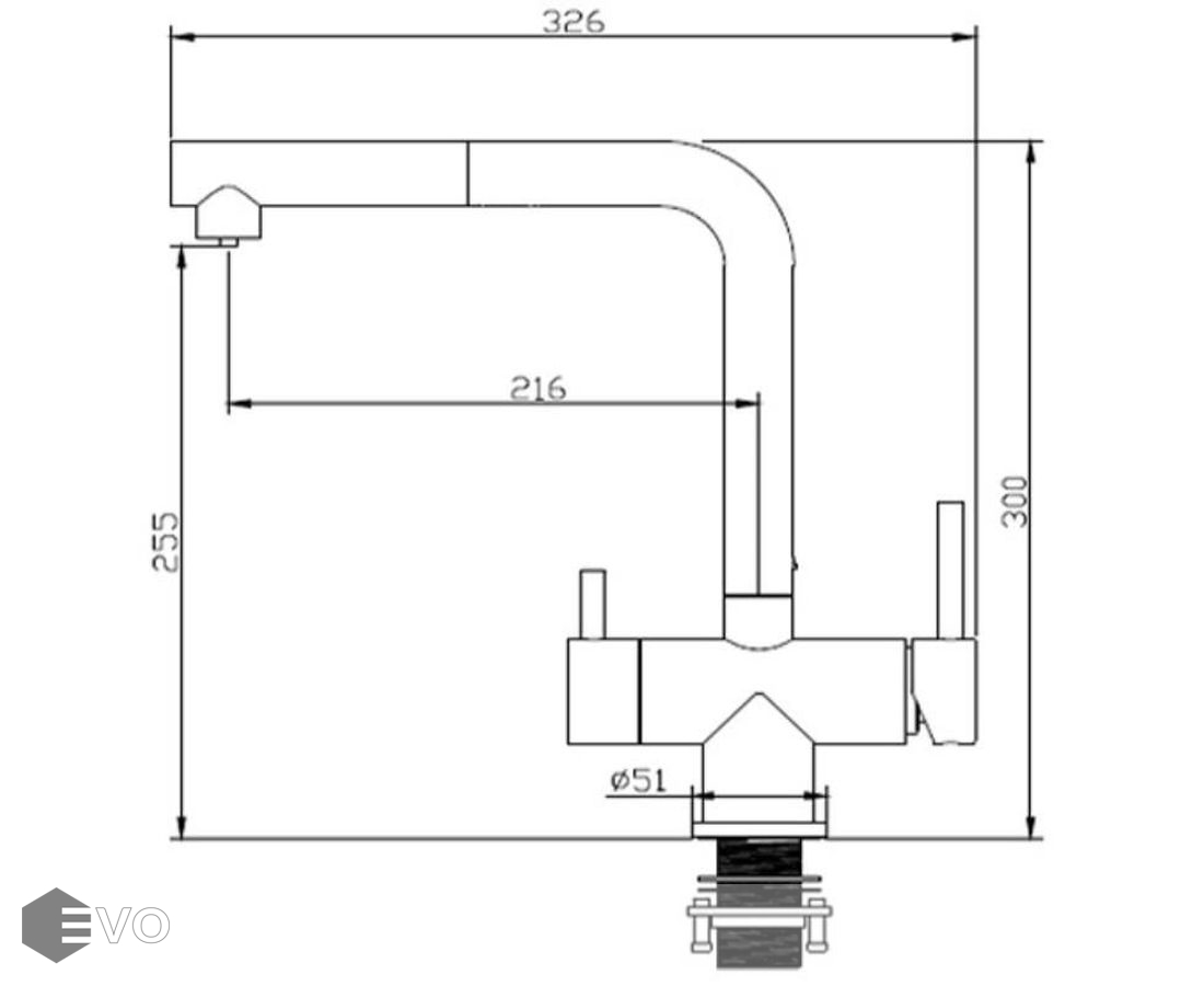 - Высота смесителя: 300 мм