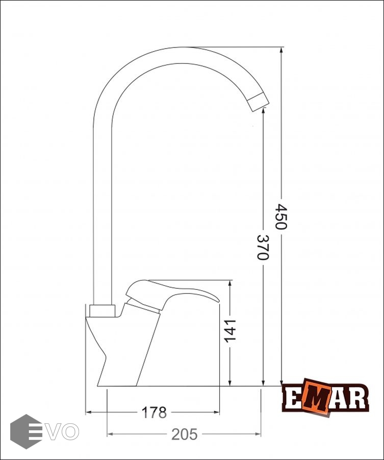 Смеситель EMAR ЕС - 3002 для кухни - универсальный в мойку. Данный кухонный смеситель имеет удобную ручку для регулировки и подачи воды (плавное переключение). Сам кран с поворотным изливом и имеет группу герметичности - 1.