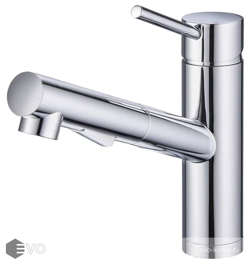 Смеситель имеет небольшие габаритные размеры и подойдет практически к любой мойке.