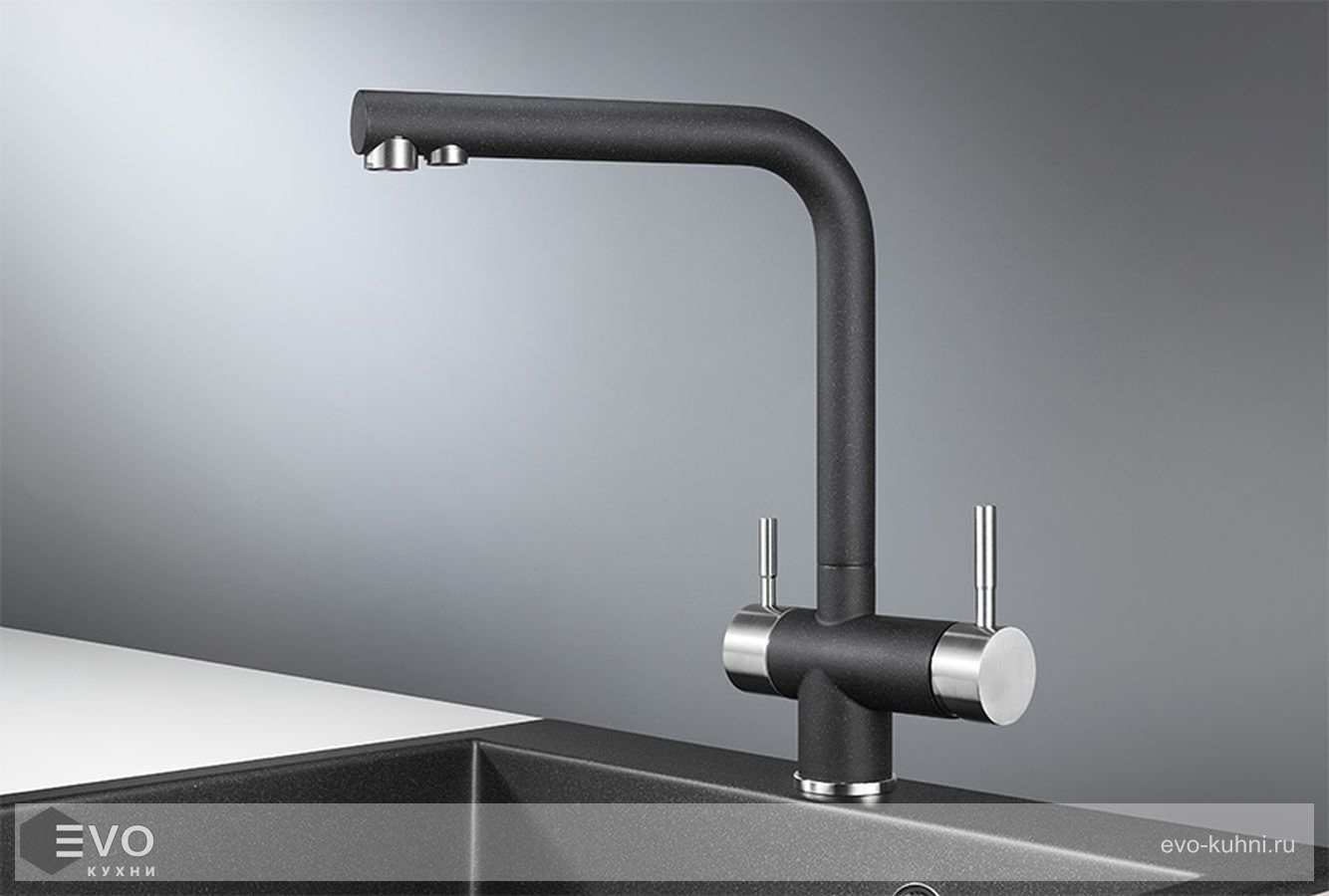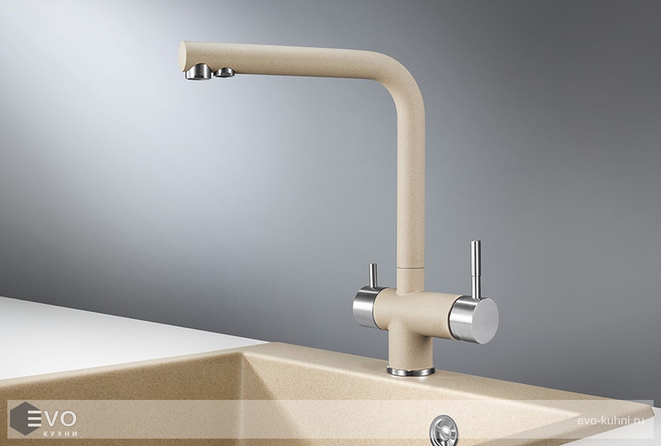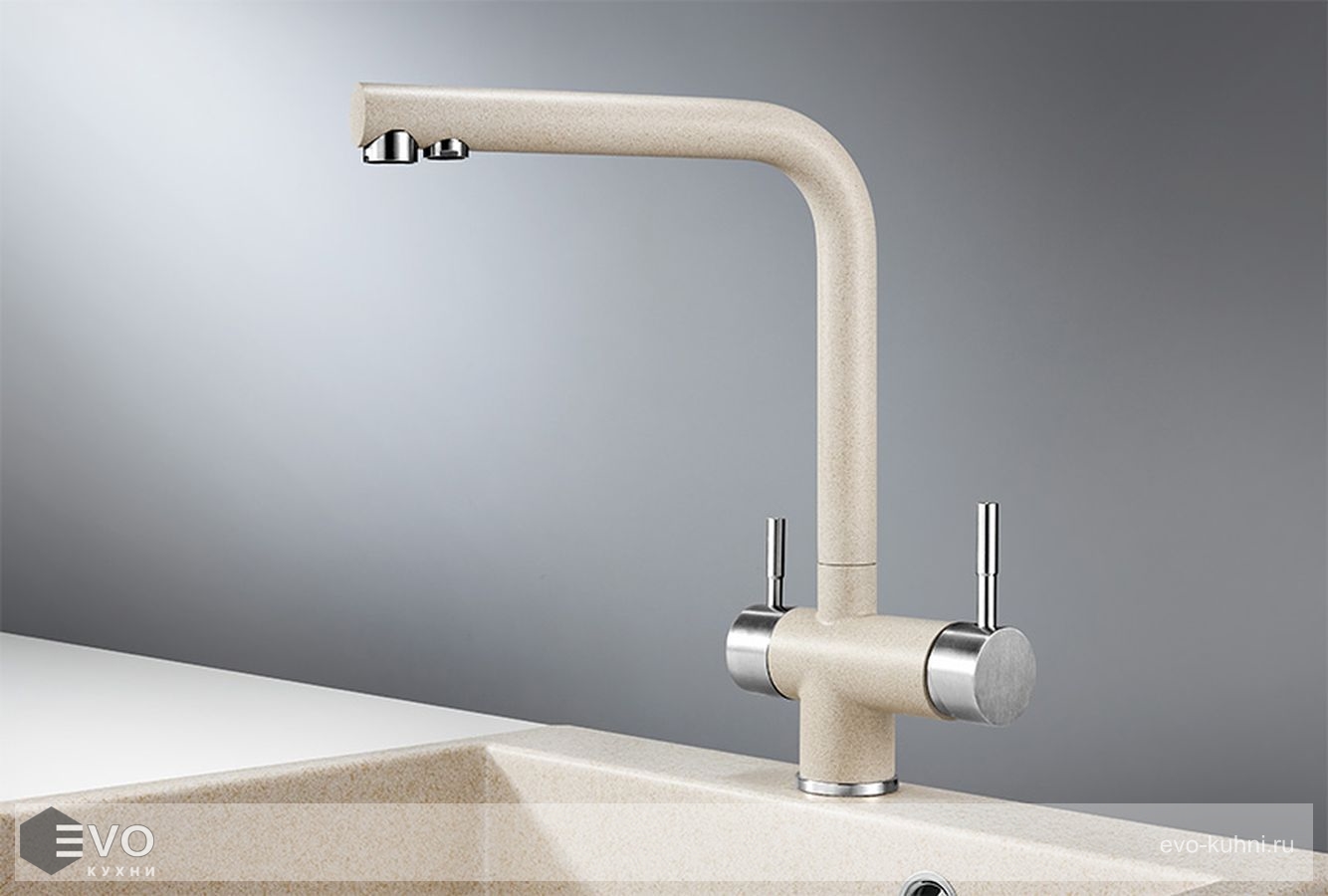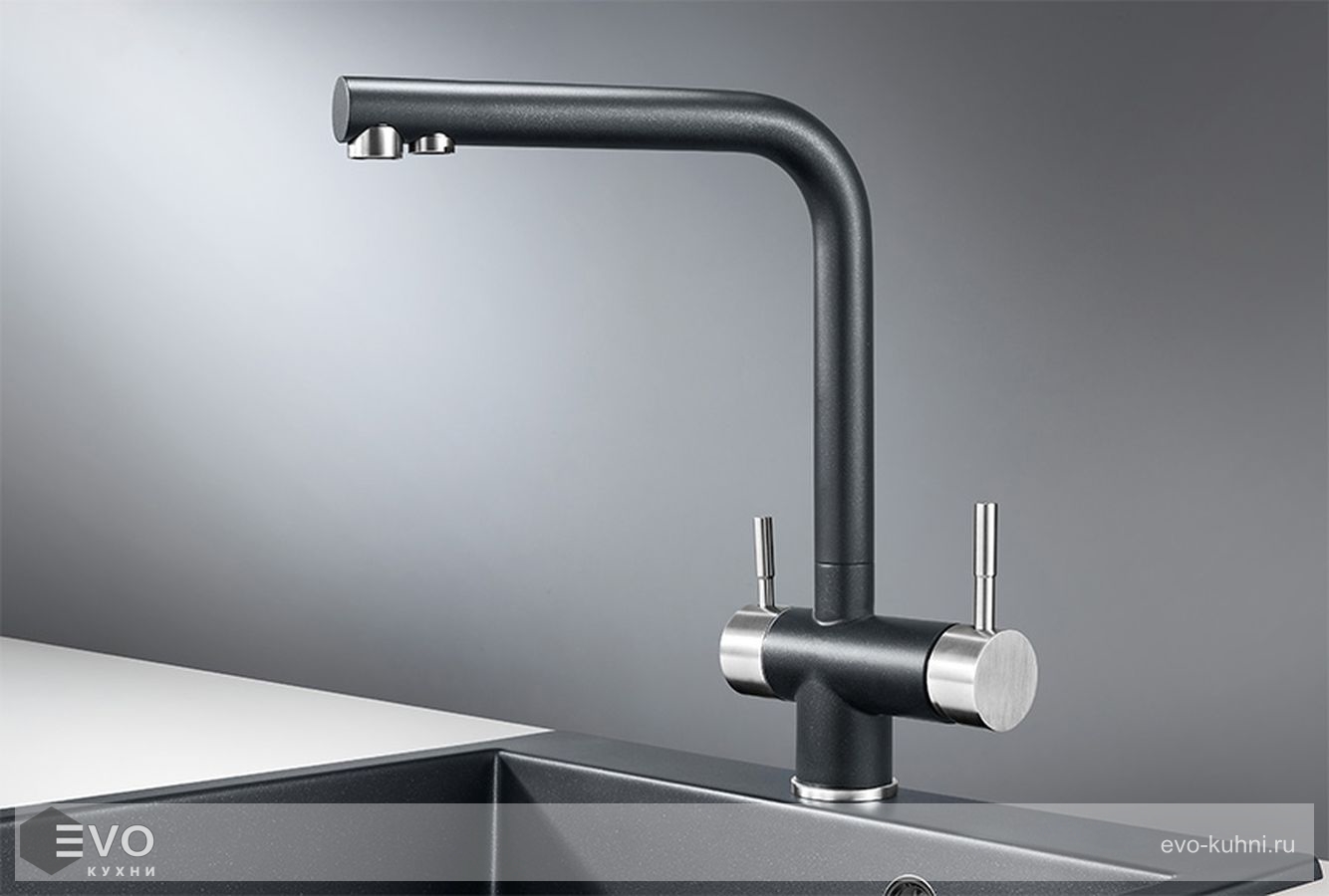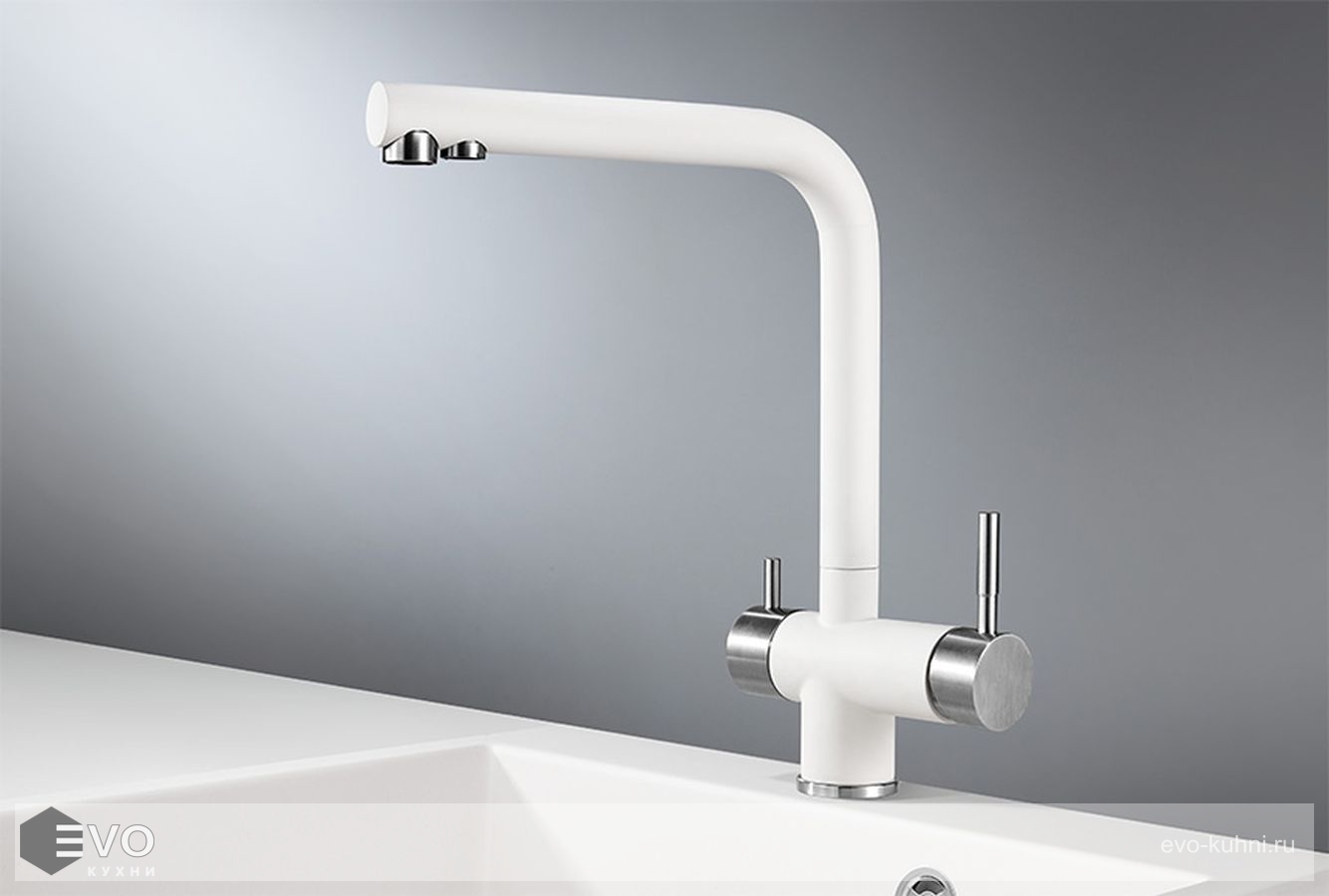 Фильтрованная вода подается по отдельной трубке и не смешивается с водопроводной водой.