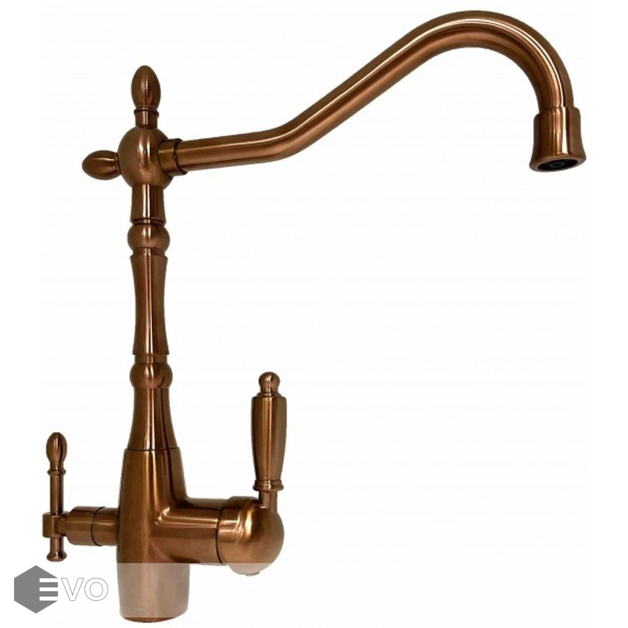 Смеситель TopZero Brad GOLD ROSE производства TopZero является высокотехнологичным оборудованием. Это винтажный кухонный смеситель с высоким поворотным изливом и подключением к фильтру для питьевой воды, обеспечивает не только смешивание и подачу горячей и холодной воды, но и подвод питьевой воды от фильтра через отдельный канал, и все это встроено в один корпус.