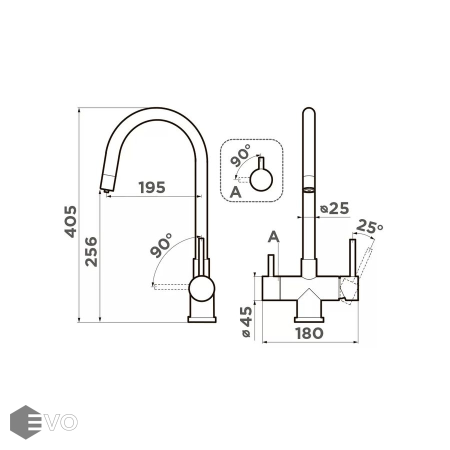 Длина излива: 195 мм