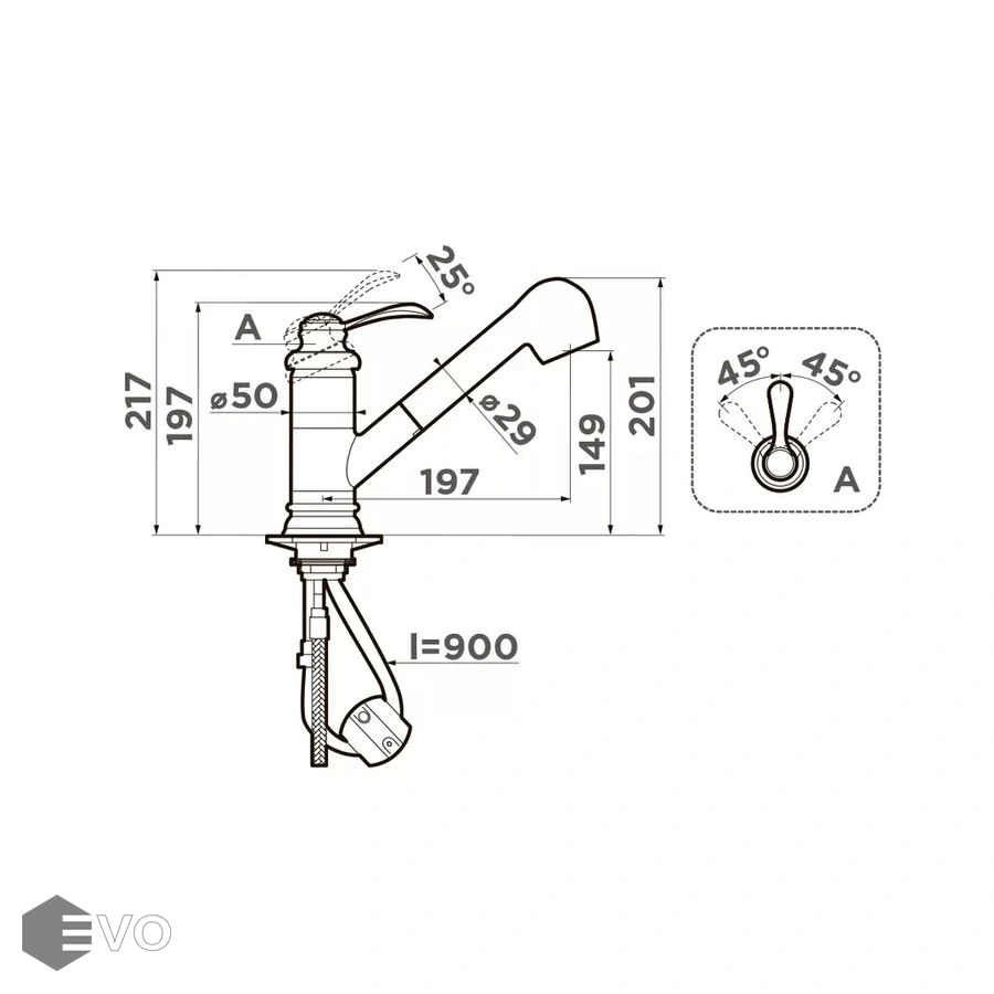 - Классический дизайн и невероятно удобная конструкция смесителя, сочетающая в себе вытяжной шланг и функцию переключения воды на 2 режима: струя и душ;