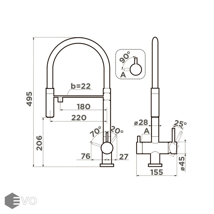 - Высота излива, мм: 206