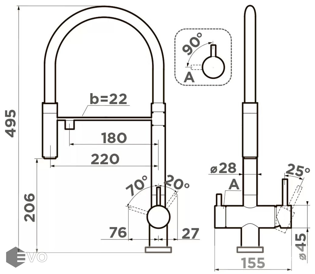 Тип излива: выдвижной гибкий для фильтрованной воды поворотный