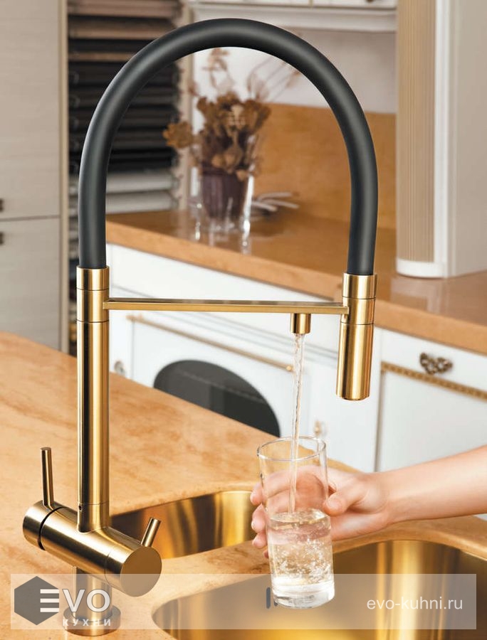Особенности: PVD покрытие встроенный кран для питьевой воды гибкий излив