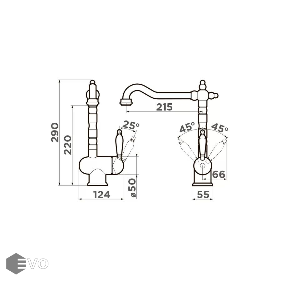 - Классический дизайн и удобство использования благодаря высокому изливу;