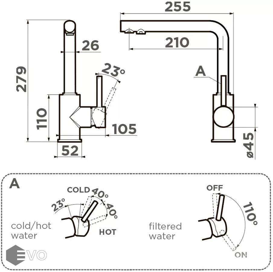 | Высота излива: | 255 мм |