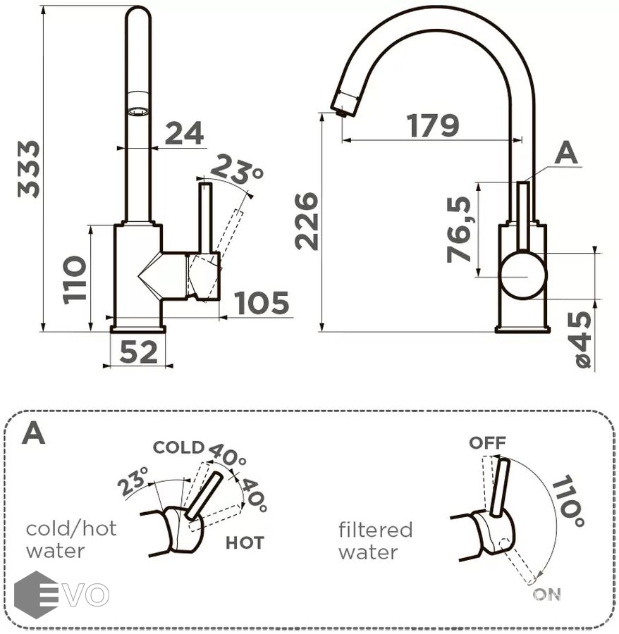 - Новая удобная технология системы ручки "2 в 1 Multi" - позволяет переключить с водопроводной на фильтрованную воду в одно касание;
