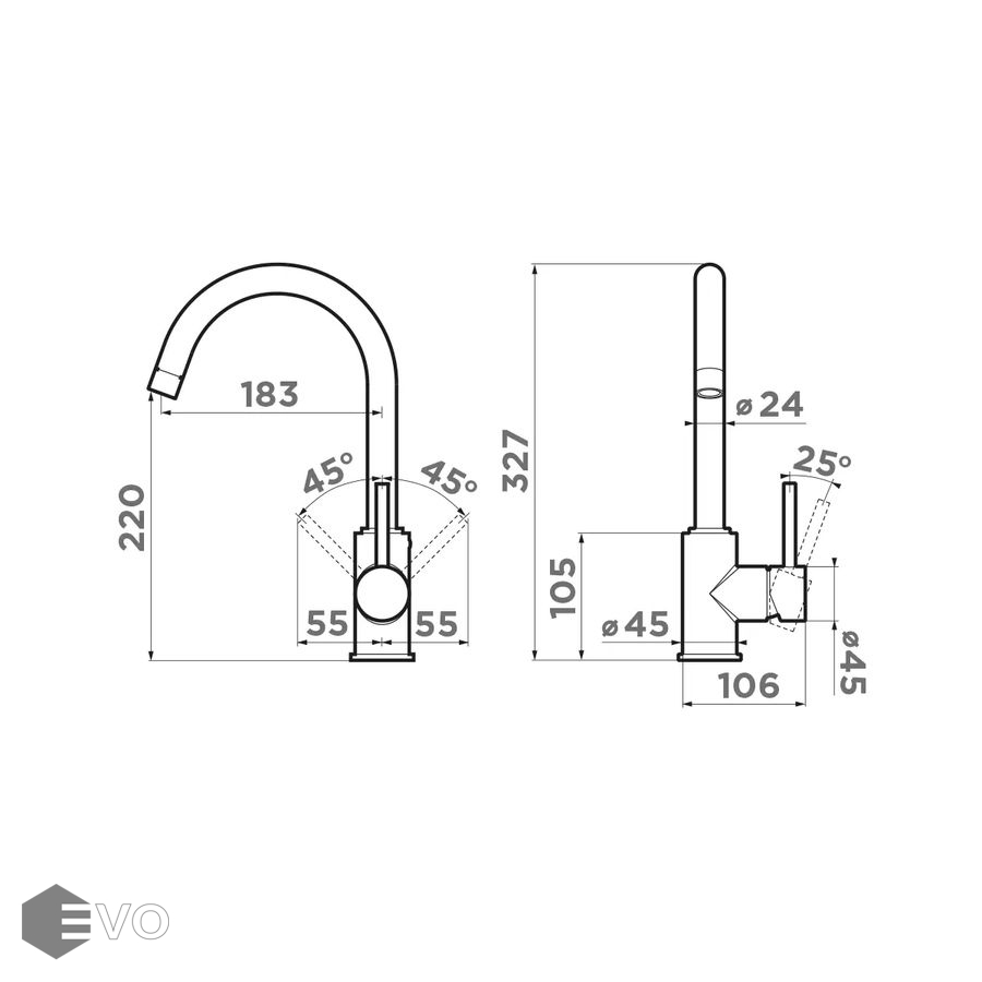 Длина излива: 183 мм