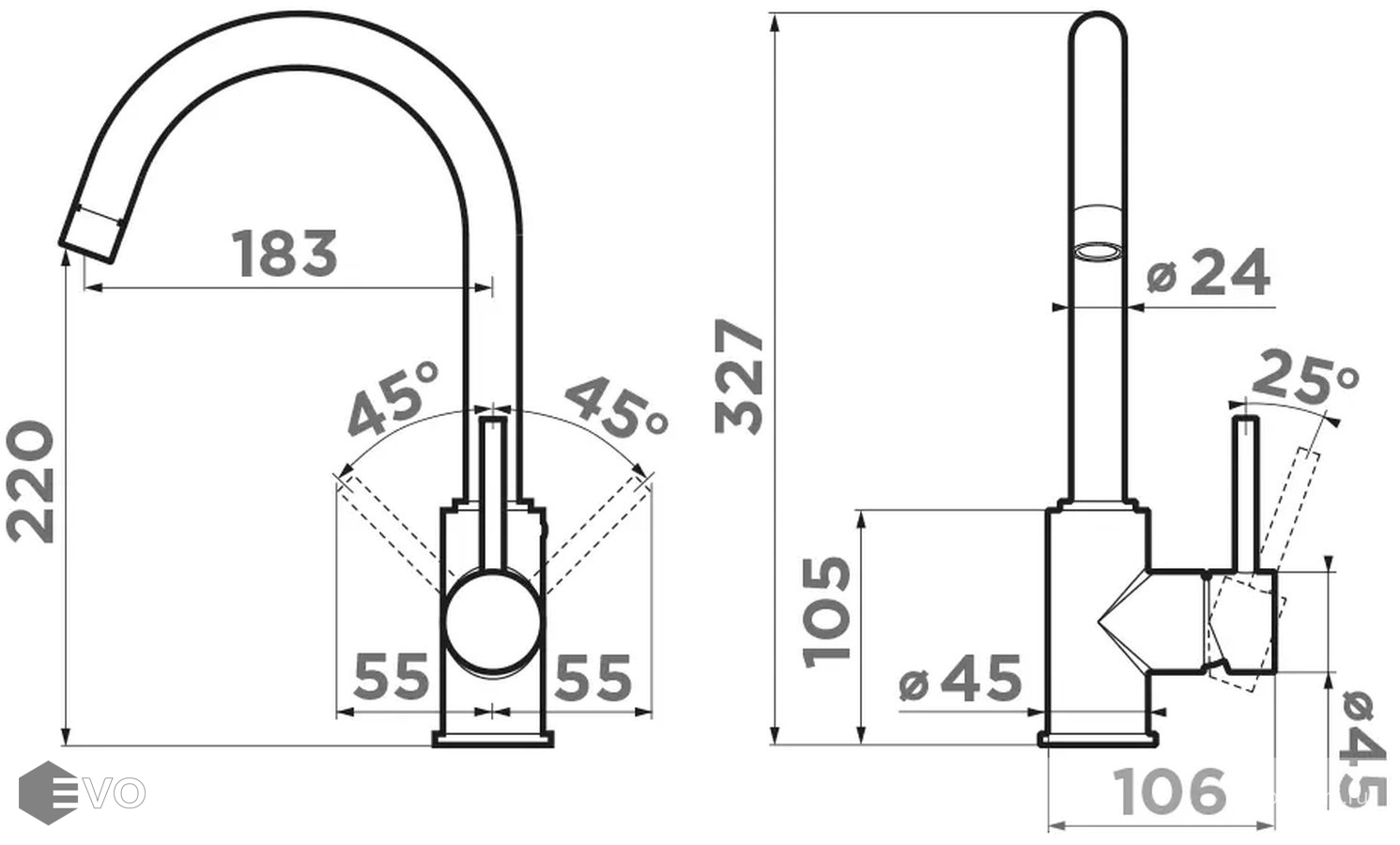 | Длина излива: | 183 мм |