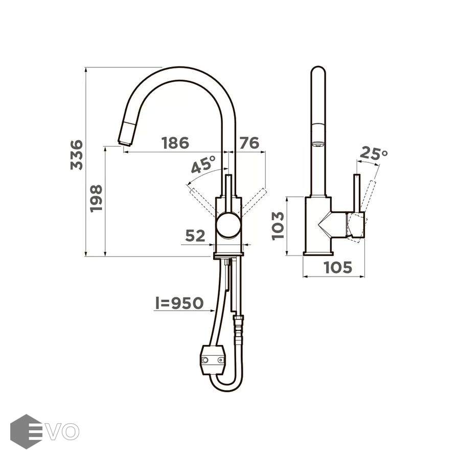 • Практичный однорычажный смеситель выполнен в современном стиле и снабжен вытяжным шлангом;