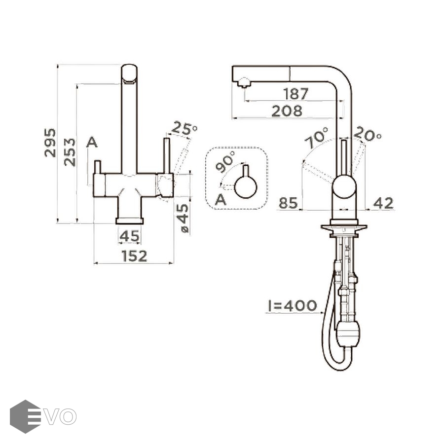 Особенности: встроенный кран для питьевой воды выдвижной излив