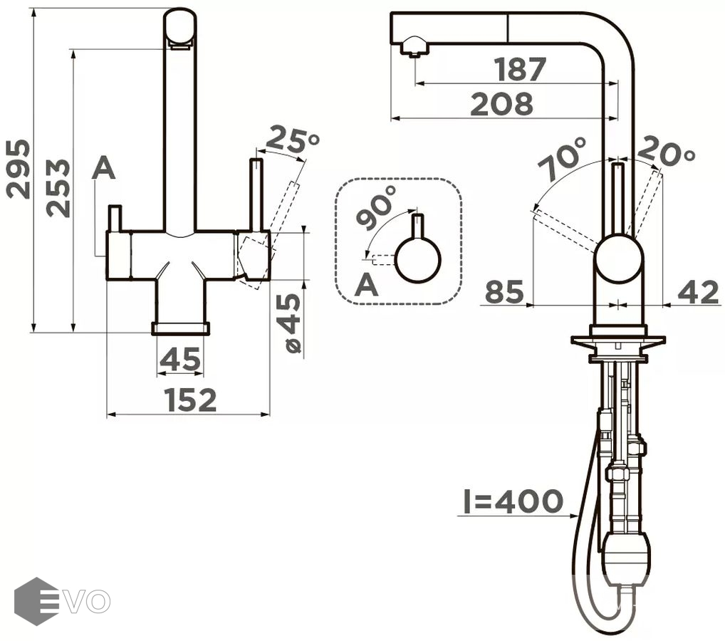 Длина излива: 187 мм