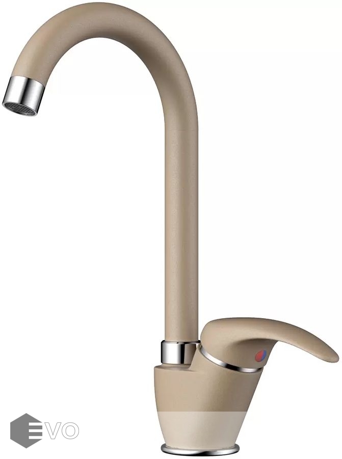 • Смеситель выполнен в современном стиле и снабжен высоким поворотным изливом, что гарантирует максимальное удобство на кухне;