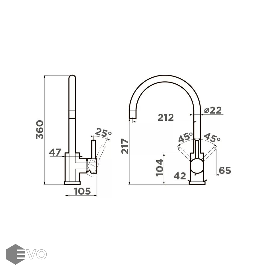 | Длина излива: | 212 мм |