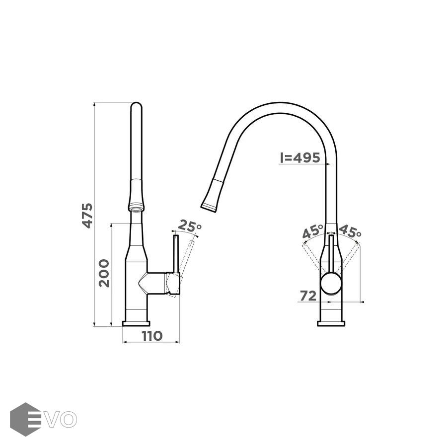 | Длина излива: | 285 мм |
