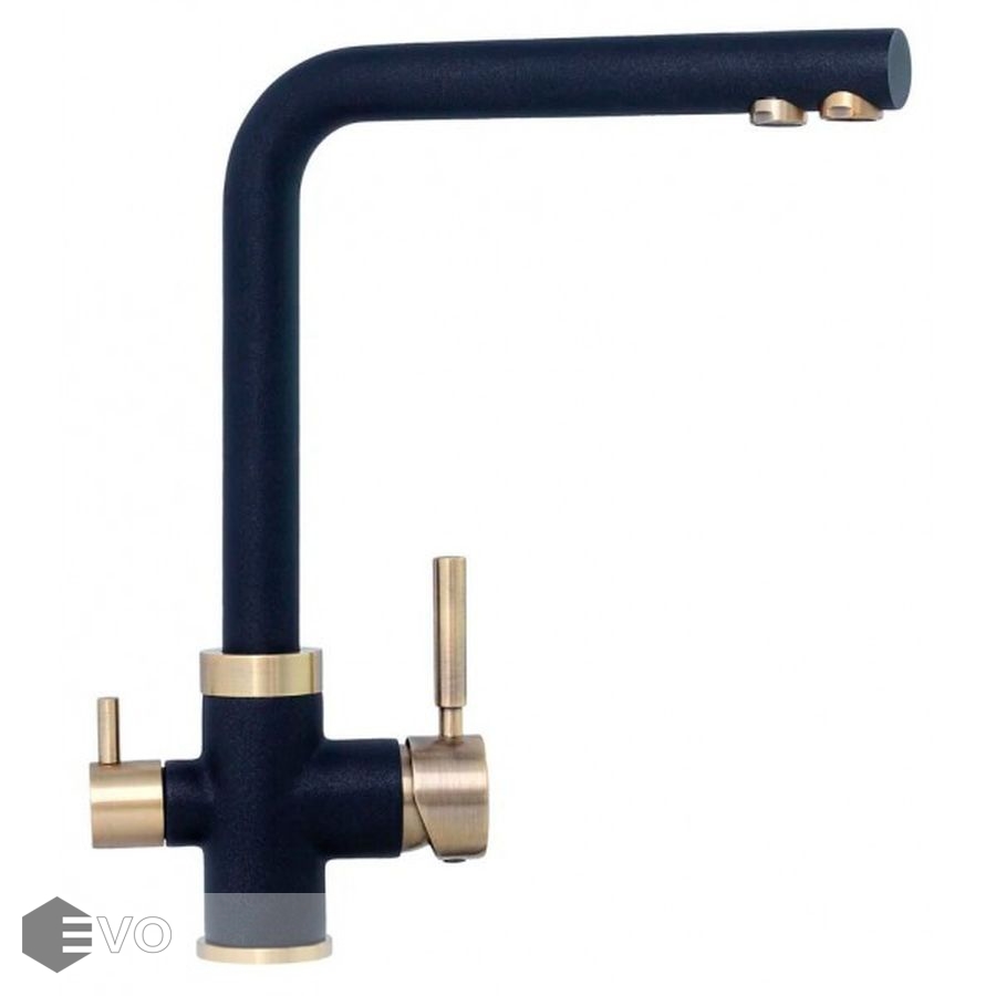 Смеситель TopZero Alphons Cosmos-10/BR, гранит/бронза производства TopZero является высокотехнологичным оборудованием и обеспечивает не только смешивание и подачу горячей и холодной воды, но и подвод питьевой воды от фильтра через отдельный канал, и все это встроено в один корпус.