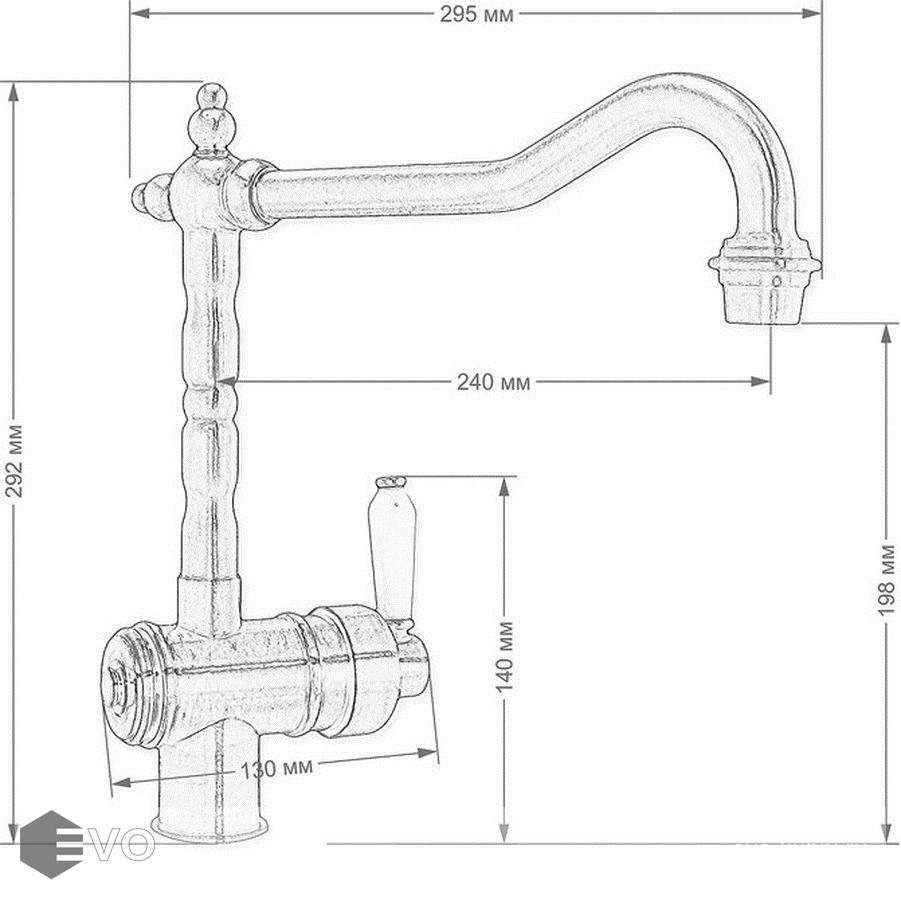 - Высота смесителя: 292 мм