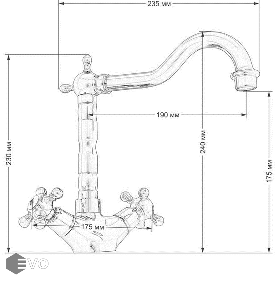 Seaman Barcelone SSL-5079 Sun Light (Polish) - двухзахватный смеситель для кухни из высококачественной латуни с PVD покрытием, в стиле "ретро"