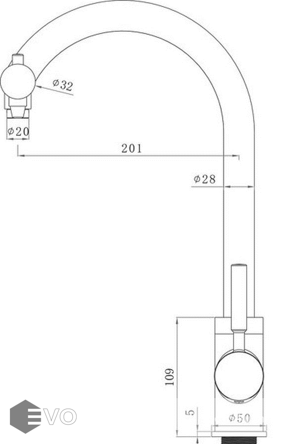 - Длина излива: 201 мм