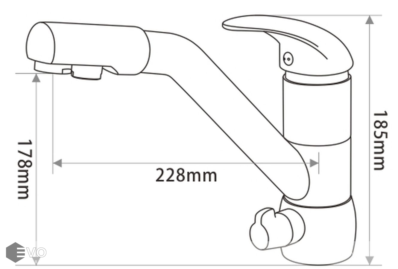 - Высота смесителя: 185 мм
