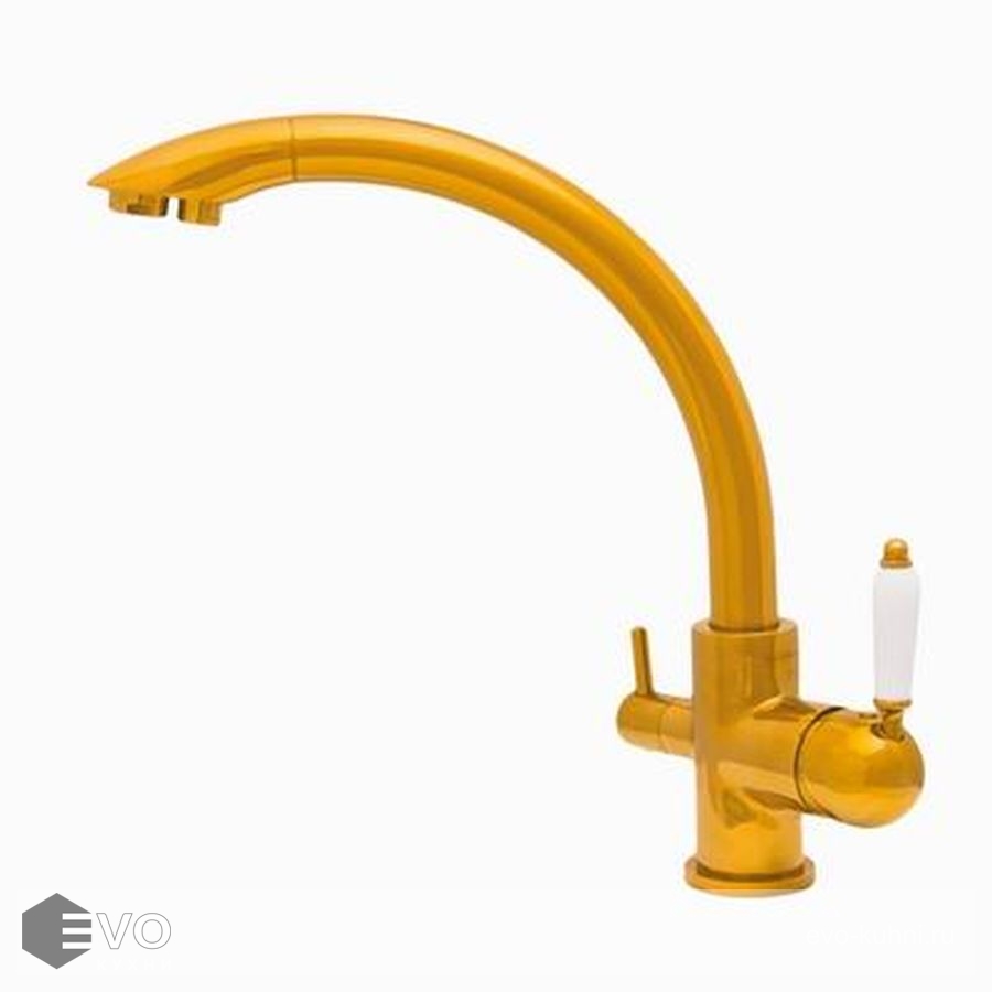 Смеситель Seaman Barcelone SSL-5382 Sun (Polish) - однозахватный смеситель для кухни из высококачественной латуни с PVD-покрытием и подключением фильтра для питьевой воды, в неоклассическом стиле.